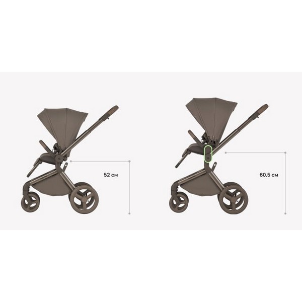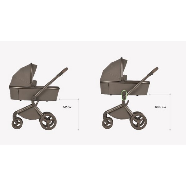 За да се осигури комфорт за семейства с всякаква височина, кошът и седалката са снабдени с адаптери за регулиране на височината. Тези адаптери позволяват повдигане на всеки компонент с 8,5 см при нужда.