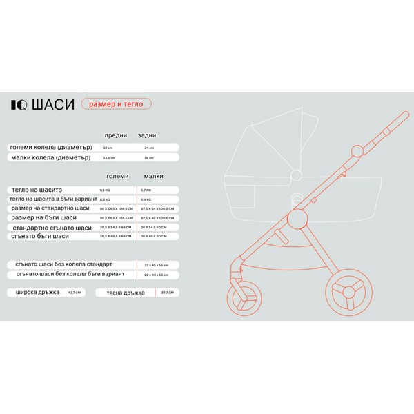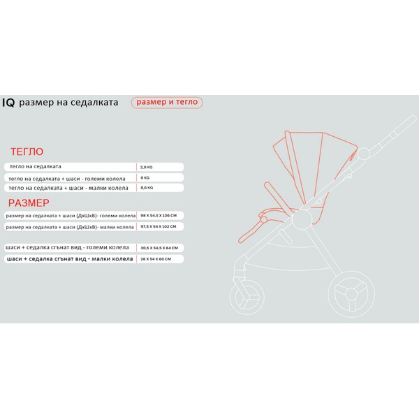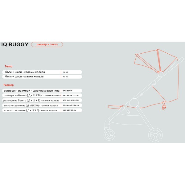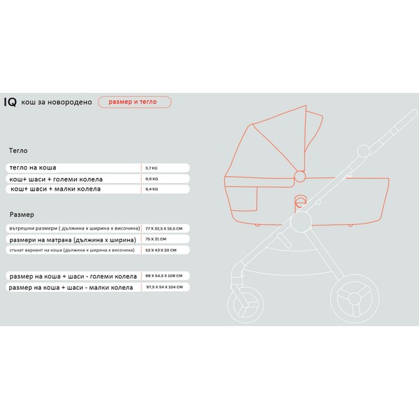 Кош за новородено, седалка и бъги в една количка! Смесете и съчетайте различни части на IQ според вашите нужди. Количката "всичко в едно" се трансформира във всички възможни опции.