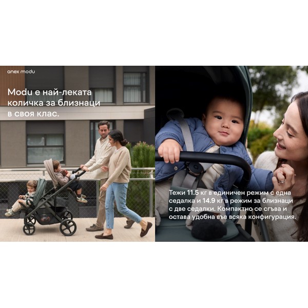 Където и да ви отведе денят, Modu се настройва с лекота. Комбинирайте и сменяйте модулите, за да отговарят на темпото на вашето растящо семейство.
