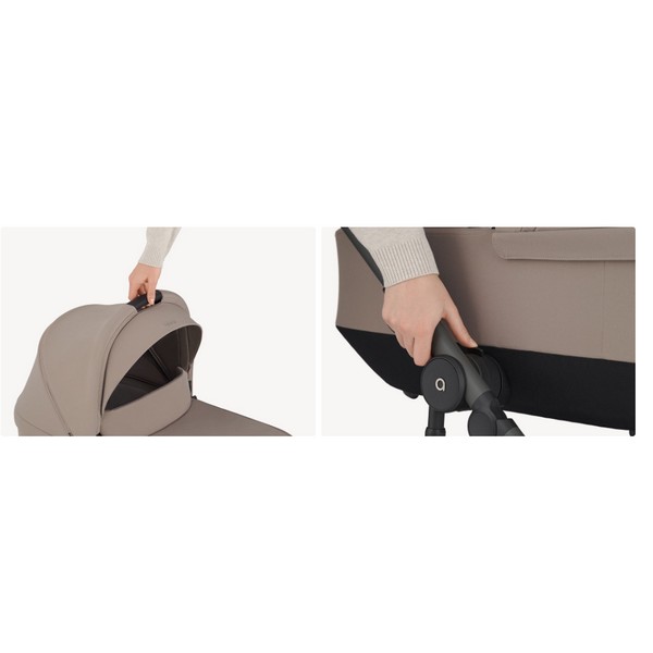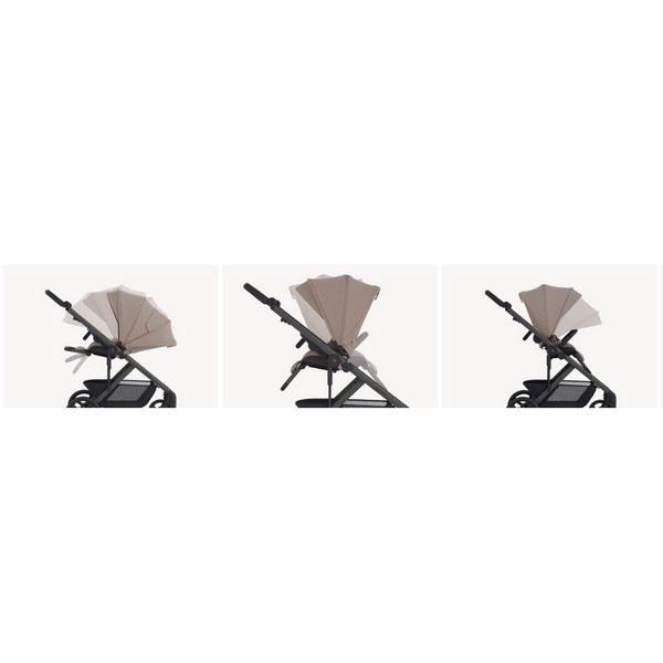 Както седалката, така и кошът за новородено разполагат със защитен сенник, който напълно покрива детето, предлагайки надеждна защита от неочаквано време.