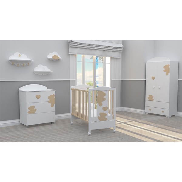 BAMBINO CASA Amore naturale - Комплект 3ч. бебешко легло + скрин + гардероб с пуш механизми