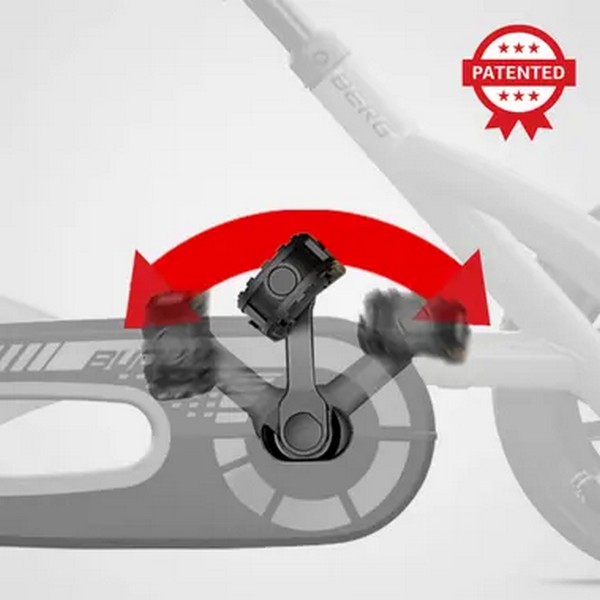 BERG Buddy е оборудван с уникалната система BFR. BFR е съкращение от „Спирачка, свободен ход и заден ход“. Със системата BFR можете да спирате с педалите, а също така можете да се движите назад веднага след спиране.