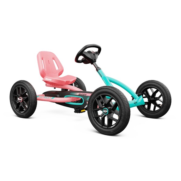 С картинга BERG Buddy ще привлечете вниманието на квартала. Седите удобно в просторната седалка, а воланът ви осигурява перфектен захват. Освен това, воланът е подготвен за BERG Soundbox, който се предлага стандартно с BERG Buddy Cross. Която и версия да изберете, с Buddy несъмнено ще бъдете най-готиният състезател на улицата!