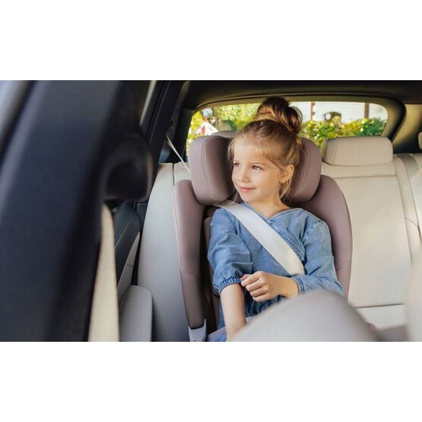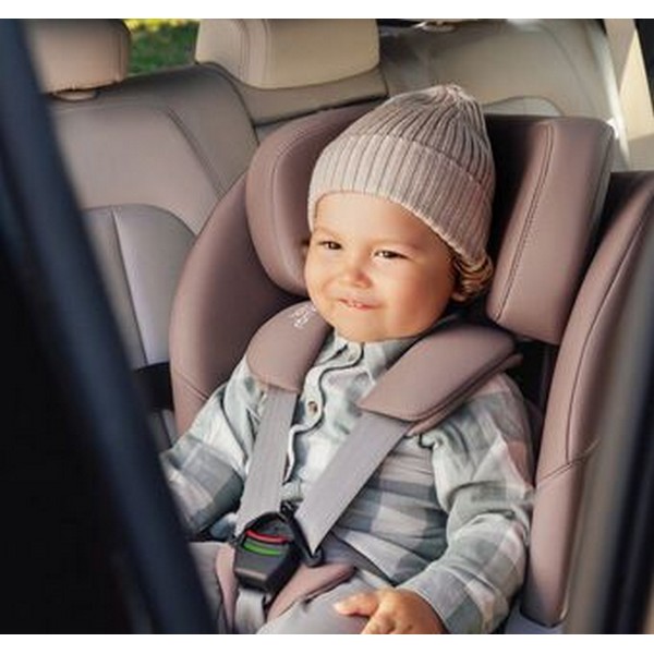 Осигурете оптимална защита при страничен сблъсък: V-образната облегалка за глава с абсорбираща енергията форма е специално проектирана да ограничава движението на главата на вашето дете, като предпазва врата му, ако се случи най-лошото, като същевременно му дава пространство, докато расте. Бързо и лесно можете да регулирате облегалката за глава и колана едновременно, така че вашето дете да се чувства напълно удобно, независимо от височината му. Освен това облегалката за глава може да се адаптира плавно, за да осигури идеалната стойка от най-ранна възраст до първи клас.