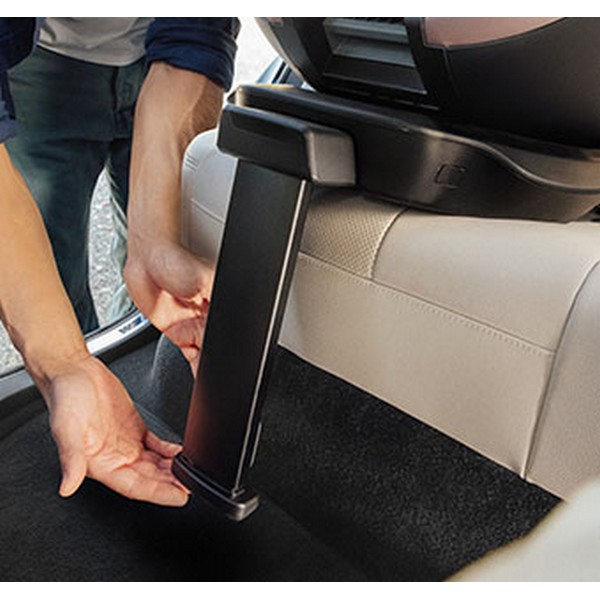 Инсталирайте SWIVEL 2 безопасно в колата си с помощта на регулируем опорен крак. Кракът се фиксира към пода на колата ви, за да осигури допълнителна стабилност и да сведе до минимум движенията на накланяне на столчето за кола. Има лесен за разчитане индикатор, който ви показва кога опорният крак е позициониран стабилно на пода на вашия автомобил.