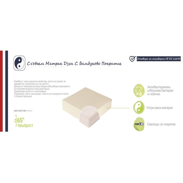 Този матрак е произведен във Франция и отговаря на стандарта NF EN 16890.