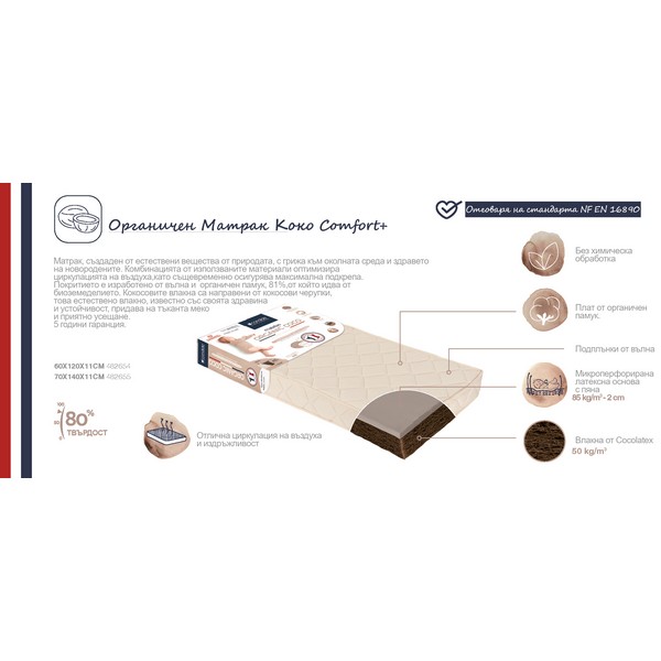 Candide Коко Comfort+ - Органичен Матрак За Легло 60X120X11 см.