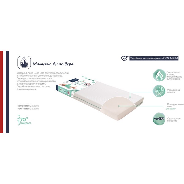 Матракът Алое Вера е признат със своите антибактериални, антиалергични и успокояващи свойства.