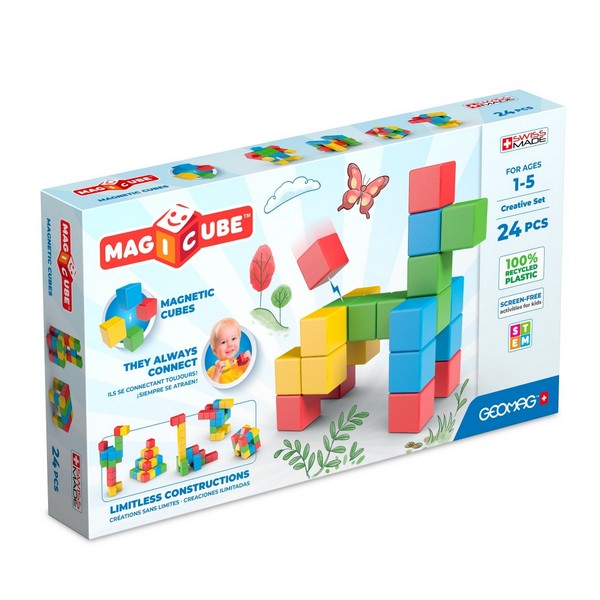 Magicube, конструктивната система, която превърна класическия куб в нещо магическо. Още една стъпка напред за нашата революционна магнитна конструктивна система Magicube: градивните елементи са направени от 100% рециклирана пластмаса! Мощните магнити, уникалното щракване, висококачествените материали, здравата конструкция и страхотните цветове правят изграждането забавно и лесно, това е 100% Geomag! Дори прозрачната опаковка се състои от 80% рециклиран PET.
