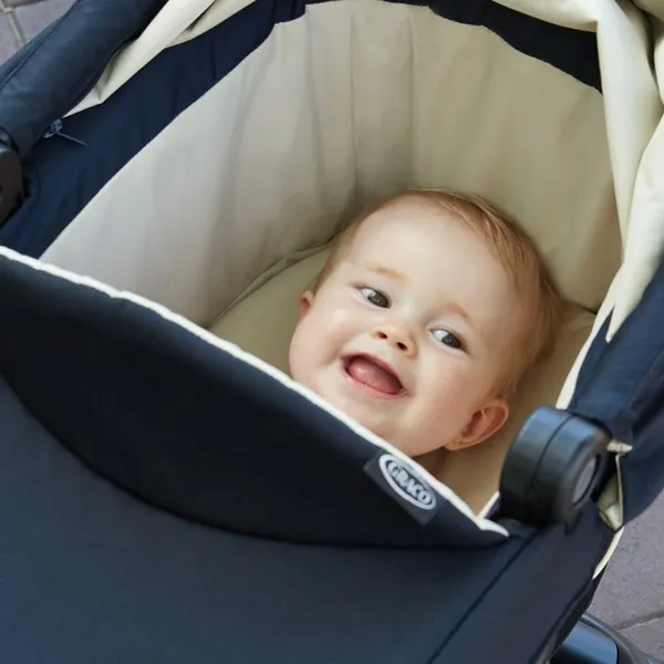 Монтирайте коша върху шасито на количката с технологията Click Connect на Graco. Само едно щракване и бебето може да спи със стил, в оптимална легнала позиция, по време на вашите разходки из града.