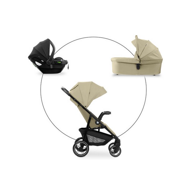 С елегантния комплект 3 в 1, включващ кош за новородено, седалка и столче за кола, сте напълно подготвени за всяко приключение – голямо или малко. Включени са подходящи адаптери за коша и столчето, които ви позволяват лесно да превърнете количката в практична система за пътуване – само с едно движение.