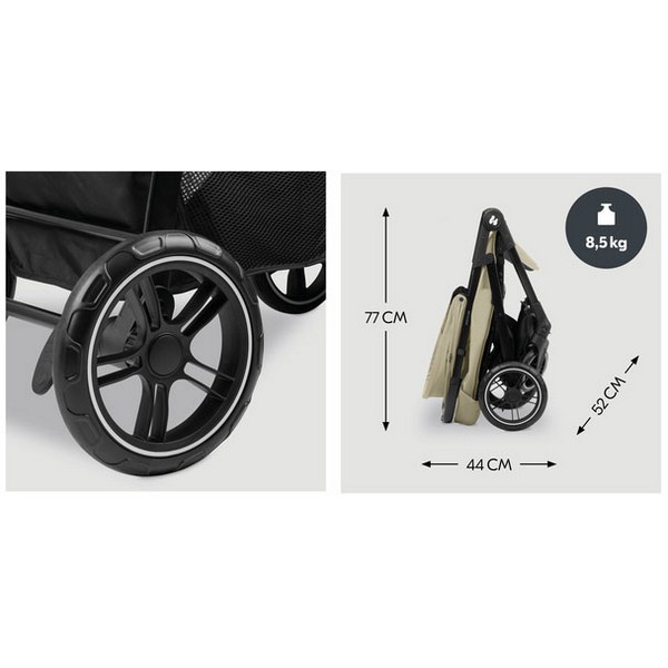 С тегло от едва 8.5 кг и гуми, устойчиви на спукване, количката е изключително удобна както за градски условия, така и за пътувания. Сгъва се с една ръка за секунди.