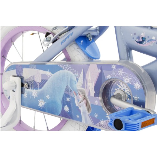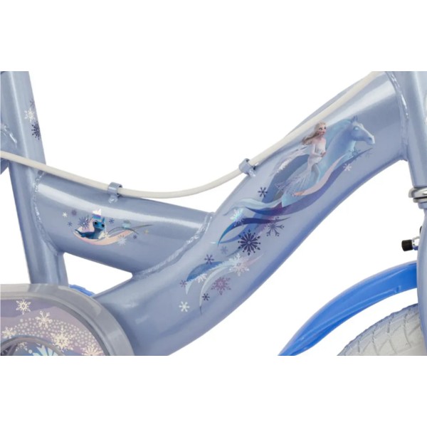 Този 14-инчов велосипед Frozen е идеалното решение за първите самостоятелни опити. Има помощни колела, които помагат за стабилността, докато детето се учи, но лесно се свалят, когато е готово да тръгне на две колела. Родителите ще оценят допълнителните функции за безопасност, като надеждната ръчна спирачка, светлоотразителите, калниците и напълно затворения предпазител на веригата. Освен това, устройството за създаване на балончета на кормилото във формата на снежинка и включеното звънче добавят забавление към всяко каране!