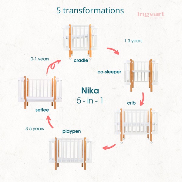 С нарастването на детето NIKA лесно се трансформира в детско легло.