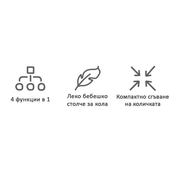 Тази 4-в-1 многофункционална количка предлага четири различни конфигурации, когато се комбинира с бебешко столче и кош за новородено (употреба с кош за новородено, със седалка с лице към родител, със седалка, монтирана по посоката на движение, със столче за кола)