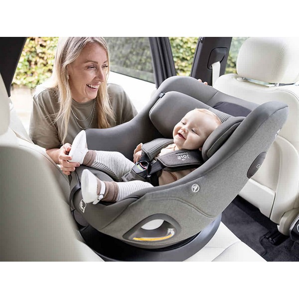 С 360º въртене и удобно разположен механизъм за завъртане осигурява плавно движение за лесно поставяне и изваждане на детето — дори когато ръцете ви са заети.