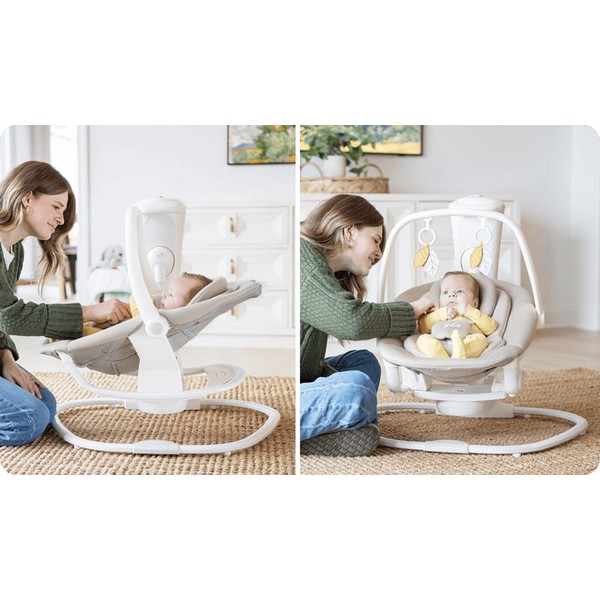 Завъртете седалката на 90⁰, за да накарате люлката да се люлее – напред-назад или наляво-надясно, симулирайки комфорта на вашите ръце