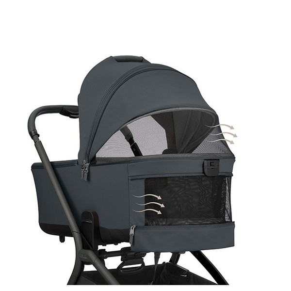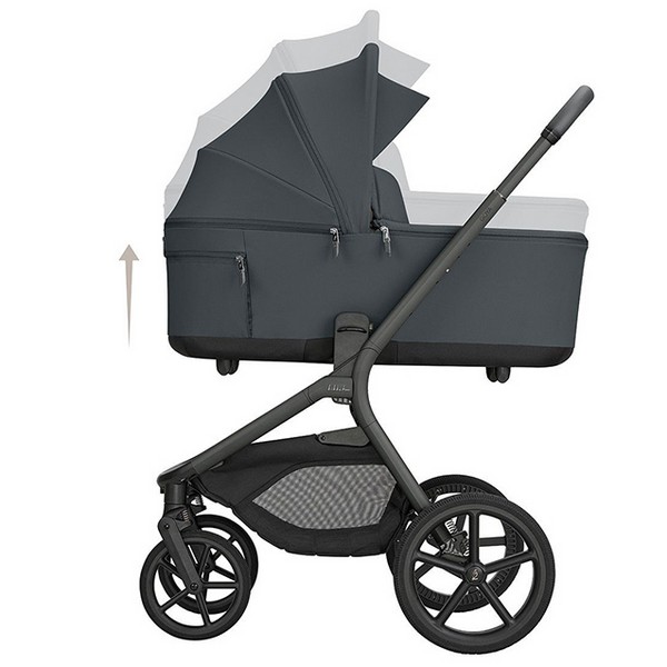 Иновативна компактна система за сгъване на коша за новородено заедно с рамката. Тази уникална функция прави количката изключително компактна и удобна;
