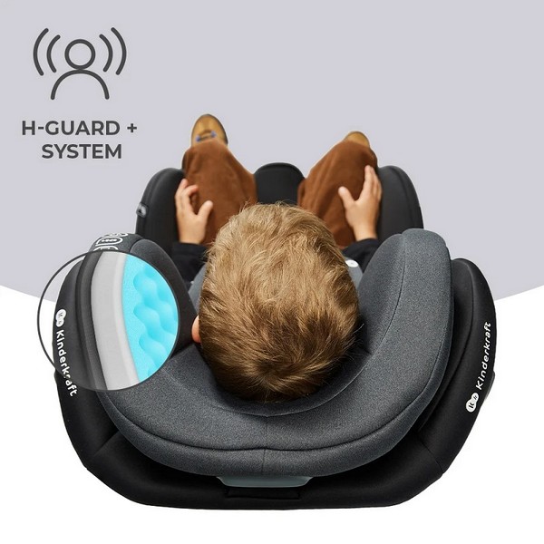 Столчето за кола е оборудвано с две системи, за да изведе безопасността при пътуване на най-високо ниво. H-GUARD+ е специално подсилена трислойна облегалка за глава с допълнителна пяна. Това предпазва частта на главата и шията при въртене, защото е още по-добре при абсорбирането на енергията, генерирана по време на сблъсък, като същевременно увеличава комфорта при пътуване чрез формоване според индивидуалната форма на главата на вашето мъниче. SPS+ е подобрена система за странична защита – щитовете разполагат с брони, които действат като зона на смачкване в автомобила и укрепват седалката на колата в ключови точки още повече. Те поемат първата и най-силна сила на удара, като я разпръскват и не позволяват да достигне до тялото на детето.