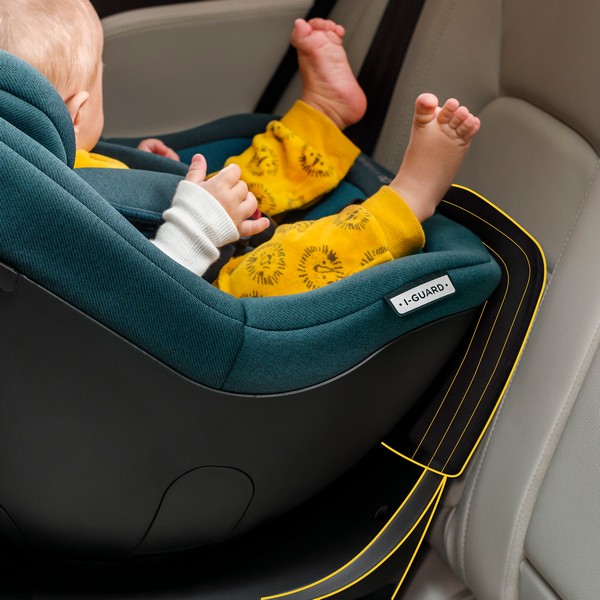 Това е I-GUARD - столче за кола за деца от раждането до около 4 години (40-105 см), отговарящо на стандарт R129/ i-Size. Тествано е при скорост до 64 км/ч, за да се осигурят по-високи стандарти за безопасност (стандартът изисква седалките да бъдат тествани за челен удар при скорост 50 км/ч). Тестовете показват, че I-GUARD намалява силите на челен удар върху главата и гърдите с цели 20%.