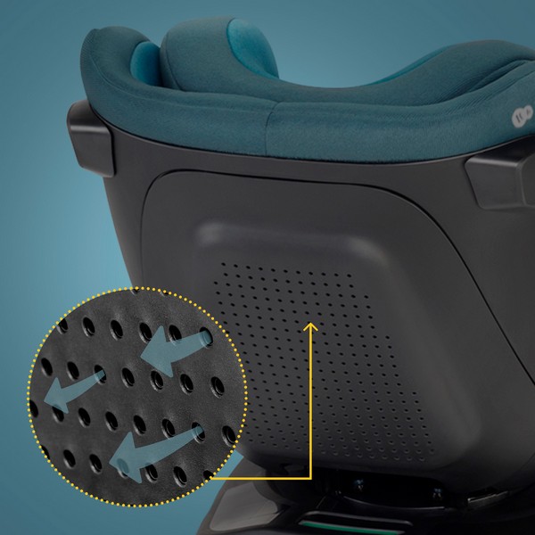 Благодарение на удължената основа, столчето приляга по-плътно към облегалката на седалката на автомобила. Това намалява и риска от деформации на седалката. А детето има и повече място за крачетата.