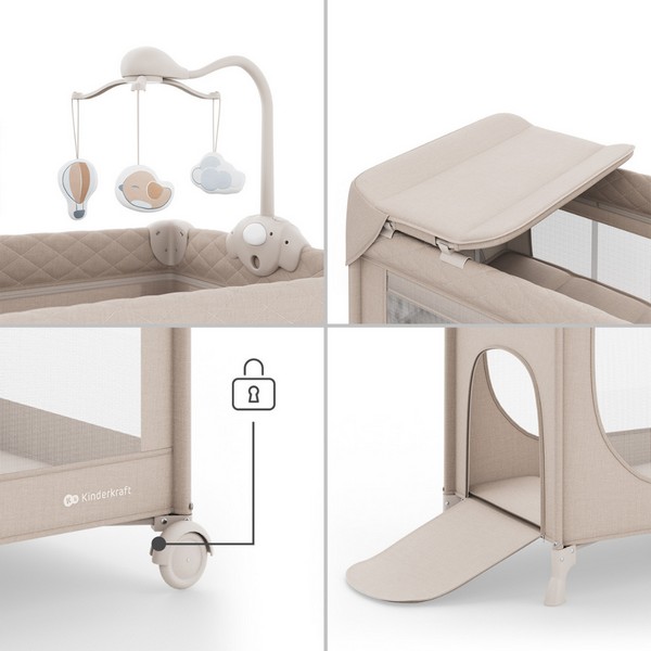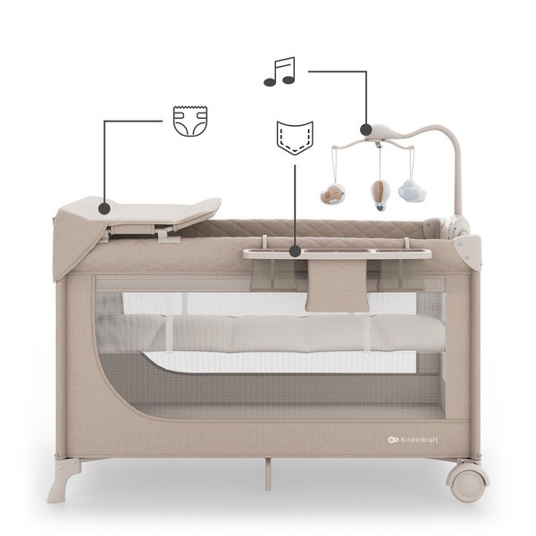Kinderkraft LEODY UP - Сгъваема бебешка кошара с аксесоари