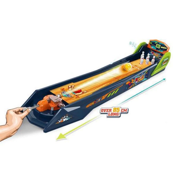Запознайте децата си с магията на боулинга с тази чудесна настолна версия на играта. С 6 включени топки в комплекта. Играта има светлинни и звукови ефекти и работи с 3x1.5 V AA батерии, които не се включени.