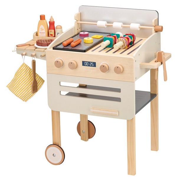 Барбекю - дървена игра с аксесоари насърчава въображението, координацията между ръце и очи, работата в екип и комуникативните умения. Децата ще се научат да споделят, да си сътрудничат и да имитират готварски дейности, докато се забавляват. Комплектът е подходящ за деца над 3 години и е перфектен подарък за рожден ден, Коледа или специален повод.