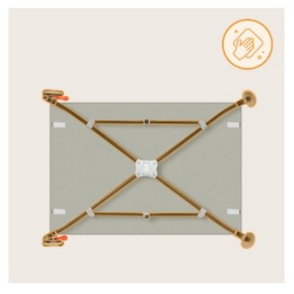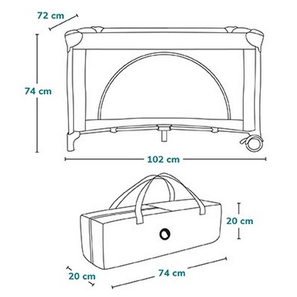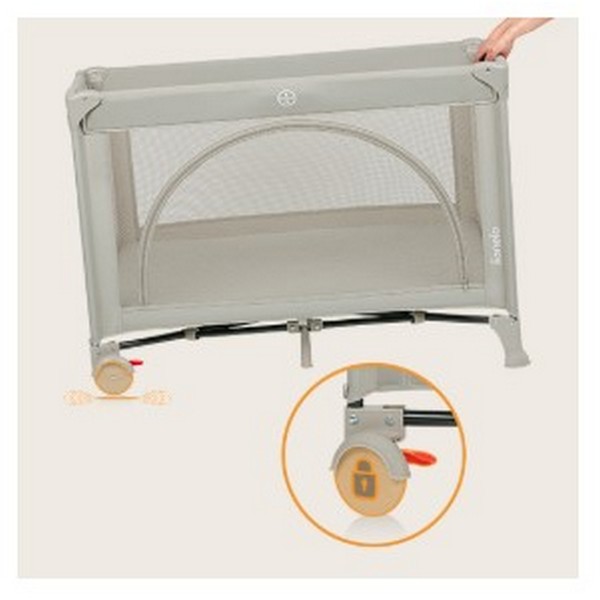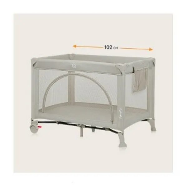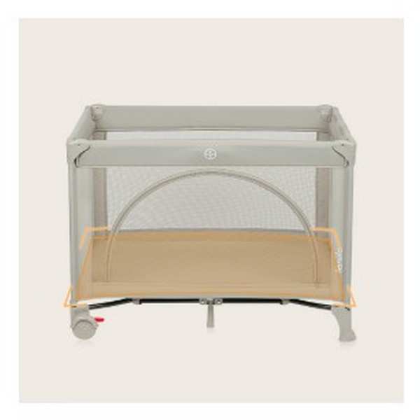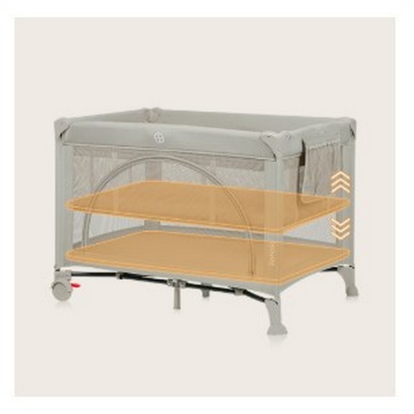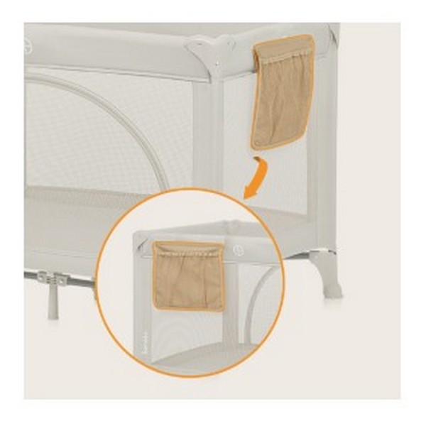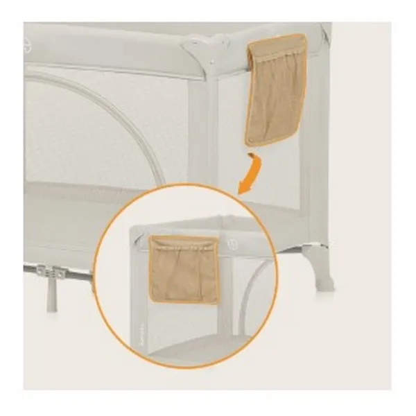 Кошарата се адаптира според възрастта на детето, като позволява регулиране на нивото на матрака. Разполага с допълнителен вход от дългата страна за лесен достъп, а мрежестите стени осигуряват постоянен визуален контакт между родителя и детето. Тази преносима и лека кошара е перфектна за максимално ефективно използване на пространството.