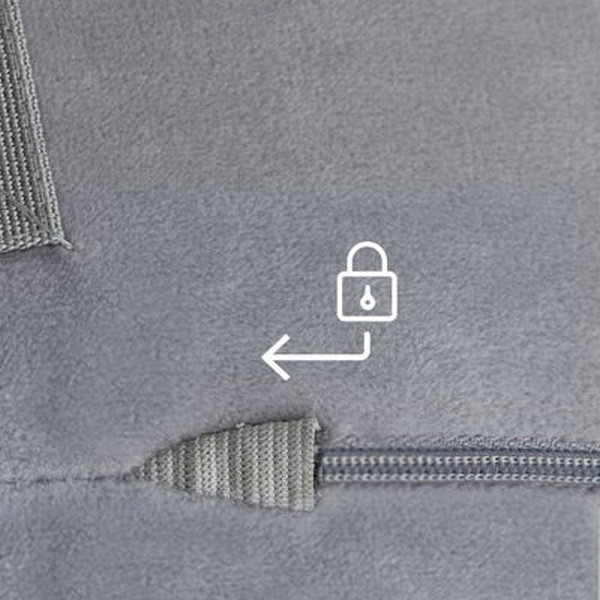 Вграден джоб с цип, който поддържа повърхността гладка и предотвратява от одраскване на кожата на бебето.