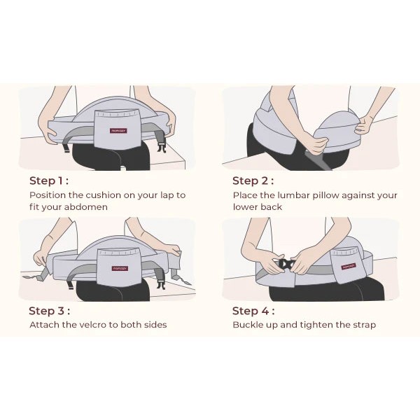 Регулируемият колан се адаптира към различни типове тяло, фиксира възглавницата стабилно и елиминира разстоянието между вас и бебето за по-добър контакт и правилна позиция. Подходяща и за татковци или други грижещи се лица.