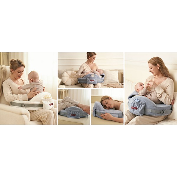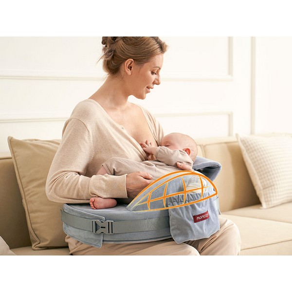 Вдъхновена от прегръдката на майката, възглавницата придържа бебето стабилно и предотвратява приплъзване, като същевременно освобождава едната ръка за повече удобство по време на хранене.