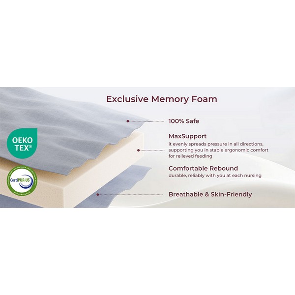 Изработена от 100% безопасна мемори пяна, възглавницата Momcozy CozyPro осигурява комфортна опора както за бебето, така и за ръцете на майката, като едновременно с това стабилизира кръста. Създава три-точкова система на поддръжка за оптимална позиция при кърмене и по-лесно засукване.