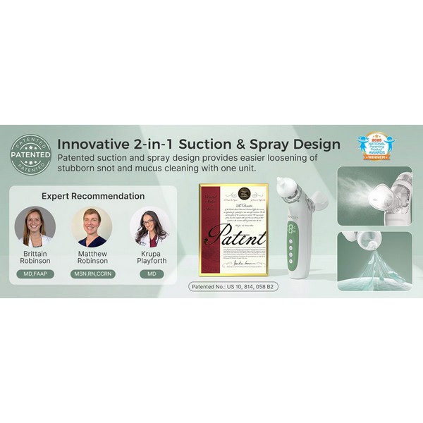 „Като педиатър често препоръчвам използването на физиологичен разтвор и назална аспирация при бебета с запушен нос. Не съм виждала друг продукт като този и смятам, че дизайнът му е изключително практичен и ефективен. Разполага със сваляща се силиконова приставка, която позволява по-нежно прилагане на разтвора, както и с мощно (но регулируемо) засмукване на ниво болничен стандарт. Включени са и два размера накрайници, за да се осигури комфорт за бебето, независимо от размера на ноздрите му.“