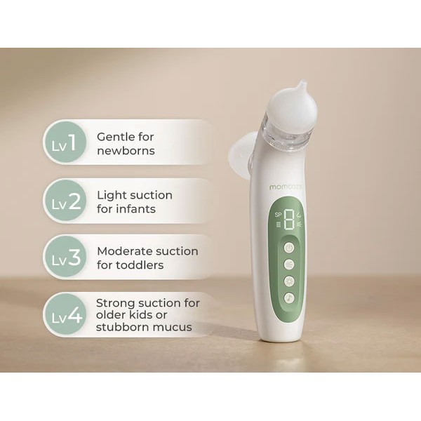 Momcozy - Електрически аспиратор за нос за бебета и деца 2 в 1 със спрей и вакуум, със светлина и музика