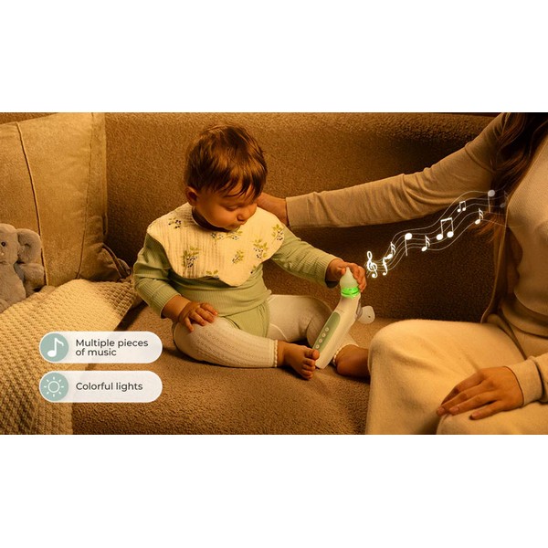 Меката светлина и веселите мелодии превръщат почистването на носа в по-приятно изживяване, задържайки вниманието на детето и улеснявайки родителите.