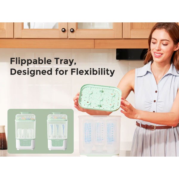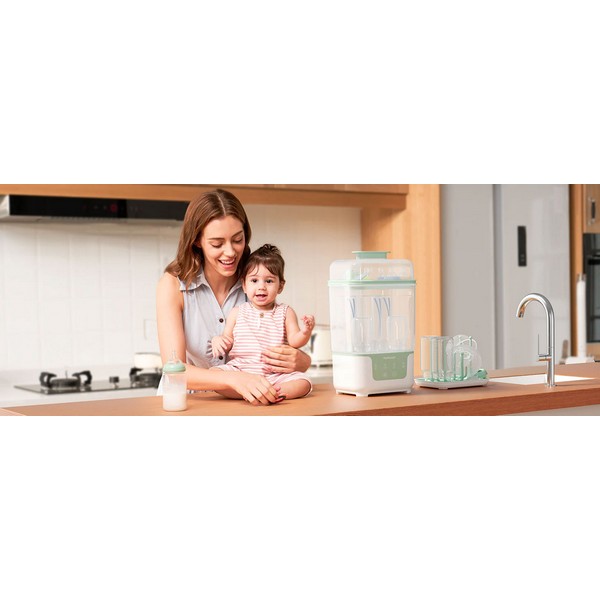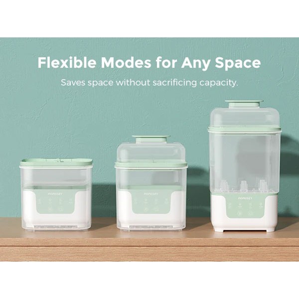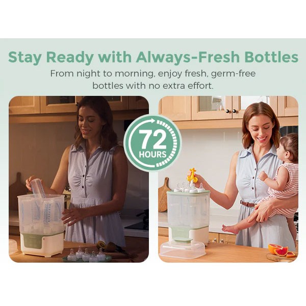 Поддържайте принадлежностите за хранене на вашето бебе чисти, сухи и винаги готови за употреба – без излишни усилия. Стерилизаторът и сушилнята за шишета Momcozy 4-в-1 съчетава стерилизиране, сушене, съхранение и автоматичен режим в едно елегантно и компактно устройство – създадено, за да ви спести време и да улесни ежедневието на новите родители.