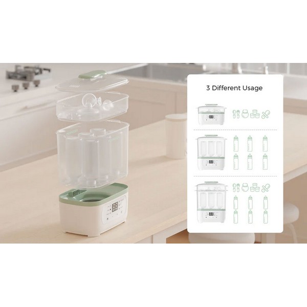 Стерилизаторът и сушилник за бебешки шишета използва пара, за да унищожи 99.99% от вирусите и бактериите – по-хигиеничен избор в сравнение с микровълнови фурни и съдомиялни машини.