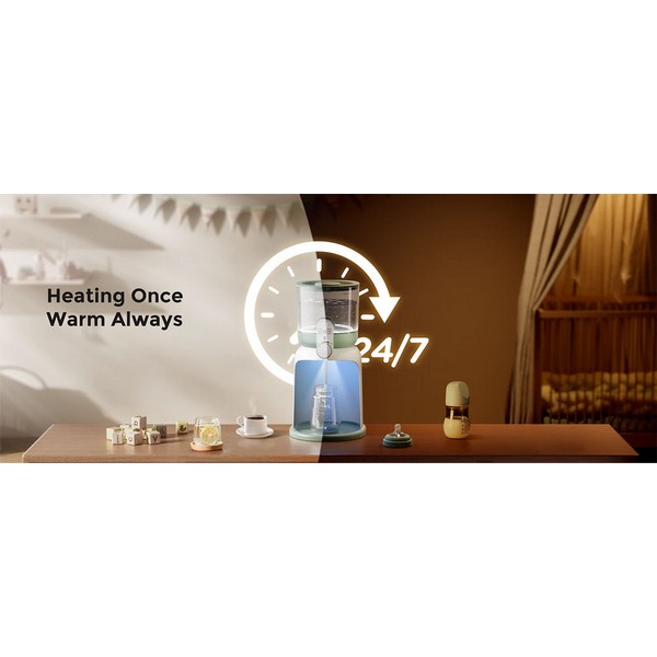Този интелигентен дозатор за вода за адаптирано мляко поддържа топла вода готова 24/7, така че можете да приготвите храната на бебето мигновено, без изчакване.