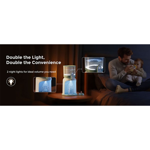 С двойно нощно осветление, прецизен контрол на водния поток и голям капацитет, той улеснява нощните хранения и натовареното ежедневие.