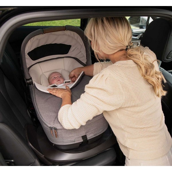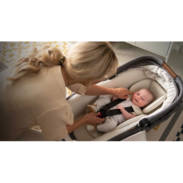 С лесно закрепване към съвместими колички Nuna с адаптер (не е включен).