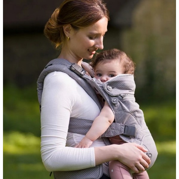 Четирите позиции на носене осигуряват ергономично позициониране с растежа на детето,