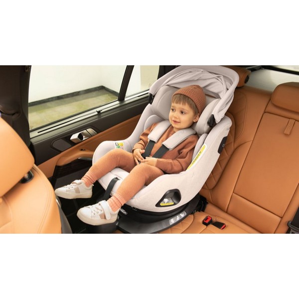 Проектирано за максимална универсалност, това конвертируемо столче се завърта на 360°, улеснява поставянето на детето и осигурява сигурно пътуване от новородено до активно прохождащо дете.