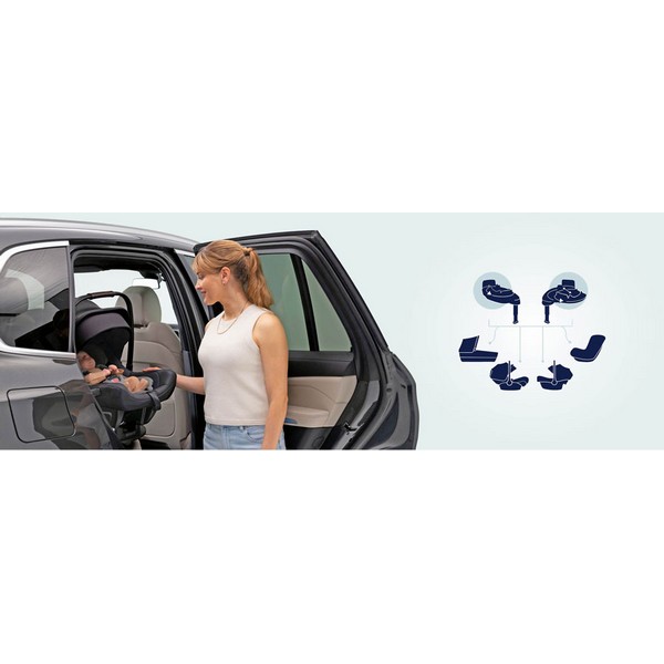 BASE next – 360° въртяща се база за лесно поставяне на детето. Монтира се чрез ISOFIX и опорен крак, с бързо закрепване на всички съвместими столчета.