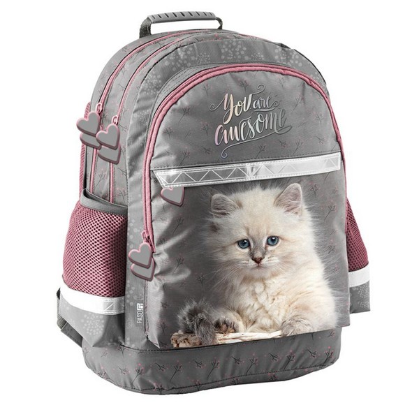Ученическа раница с 3 отделения, странични мрежести джобове, ергономичен гръб, подплатени презрамки, подсилено дъно, светлоотразителни елементи. Размери 41х28х18 см