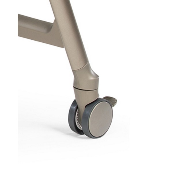 С 4 големи въртящи се колела с гумено покритие, които не се надраскват, придвижването е лесно и не уврежда пода. Задните колела имат вградена спирачка за максимална стабилност.