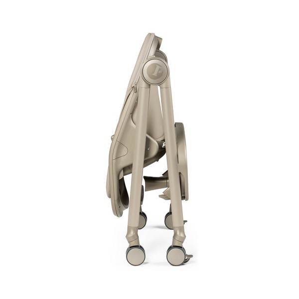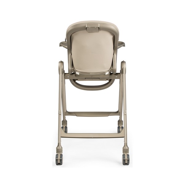 Иновативна система на затваряне с копчета на сгъваемите връзки. Когато е затворено, столчето за хранене е изключително компактно и остава изправено дори с поставена табла.