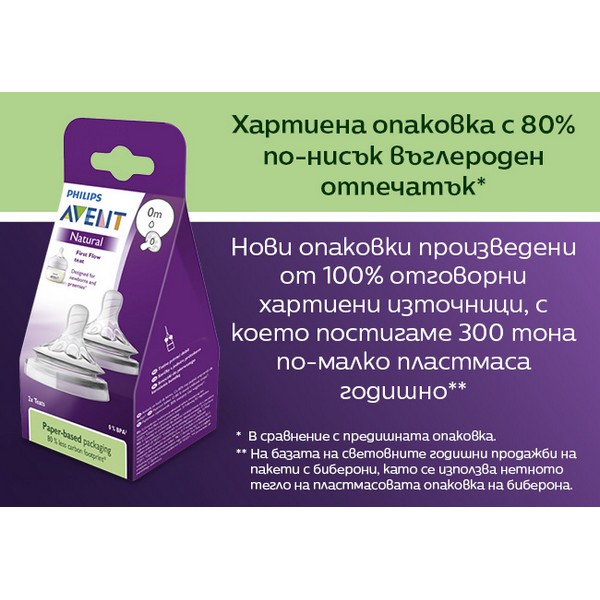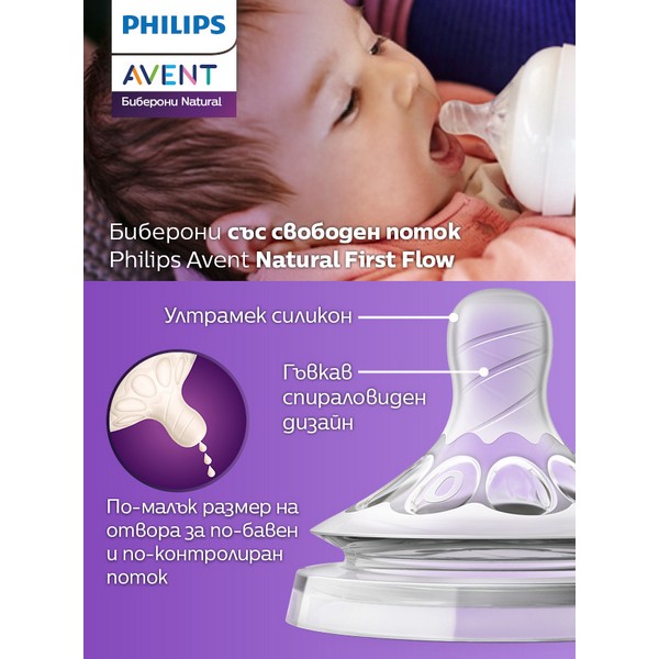 Philips Avent Първи биберони за новородено Natural SCF657/27 са внимателно разработени за най-нежния етап от храненето. По-малкият отвор осигурява повече контрол върху потока на млякото, което е особено ценно за новородени и недоносени бебета, както и за мъници, които се хранят по-бавно и спокойно.