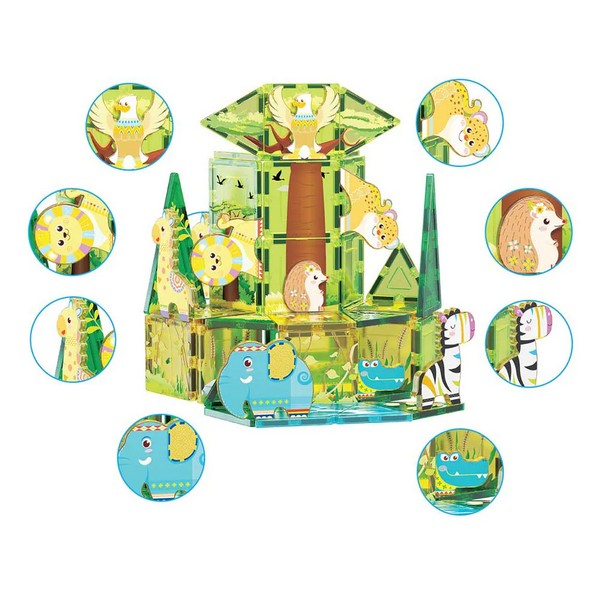 Потопи се в сърцето на дивата природа с магнитните плочки на тема сафари, които разпалват креативността и въображението. С магнитни животински герои, този комплект дава възможност на всеки малък изследовател да осъществи мечтите си за сафари.