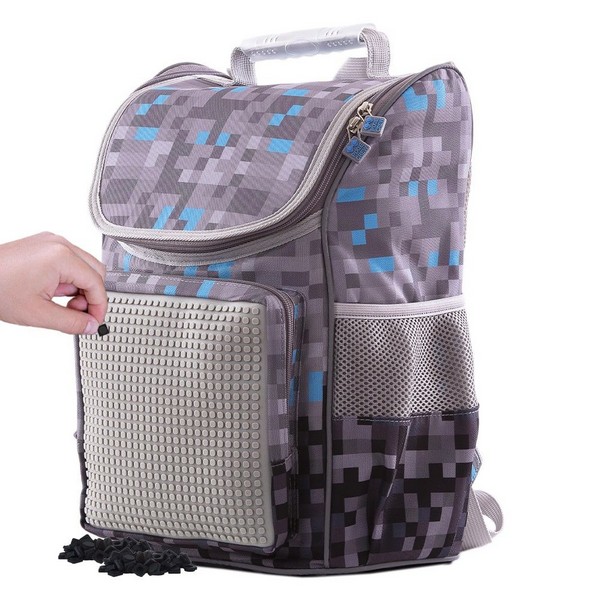 Ергономичната раница от Pixie Crew ще се хареса на учениците, благодарение на интересния си дизайн. Тя е достатъчно просторна, че да събере всичко необходимо без никакъв проблем. Бутилката за вода и чадърът могат да се съхраняват в страничните мрежести джобове, а предният джоб е подходящ за дребни вещи. Празрамките са подплатени и напълно регулируеми, което осигурява допълнителен комфорт, а дръжката е удобна за носене в ръка. На предния капак ще намерите силиконов панел, на който могат да се редят пиксели. Пликче с черни силиконови пиксели в комплекта.